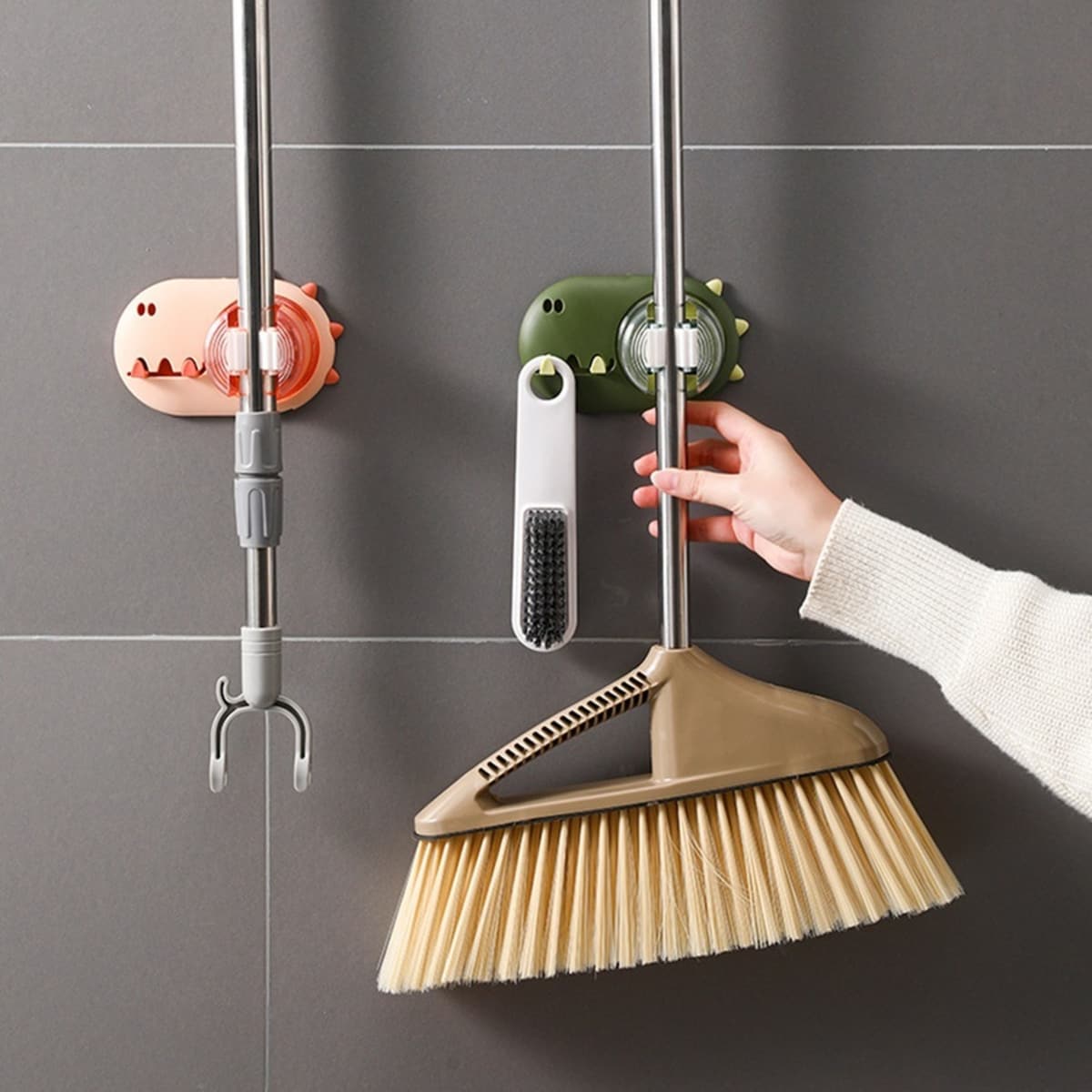 π§Ή Tired of messy cleaning tools? Keep your space neat and cute with our Cartoon Wall Mounted Mop Holder. π§Ί Multi-Functional Holder Holds mops, brooms, brushes, or umbrellas securely with its silicone buckle and U-shaped grip. πͺΒ Durable Waterproof Build Strong, waterproof materials ensure long-la...