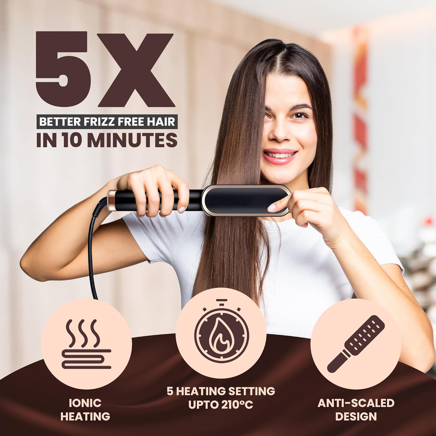 ⚡ Frizzy, messy hair taking too long to style? Get smooth, shiny hair in minutes with this 2-in-1 Hair Straightening Comb, made for fast, easy, and safe styling. 🪮 2-in-1 Straightening Brush Straightens, detangles, and styles at the same time. Dense 3D teeth spread heat evenly with every stroke....