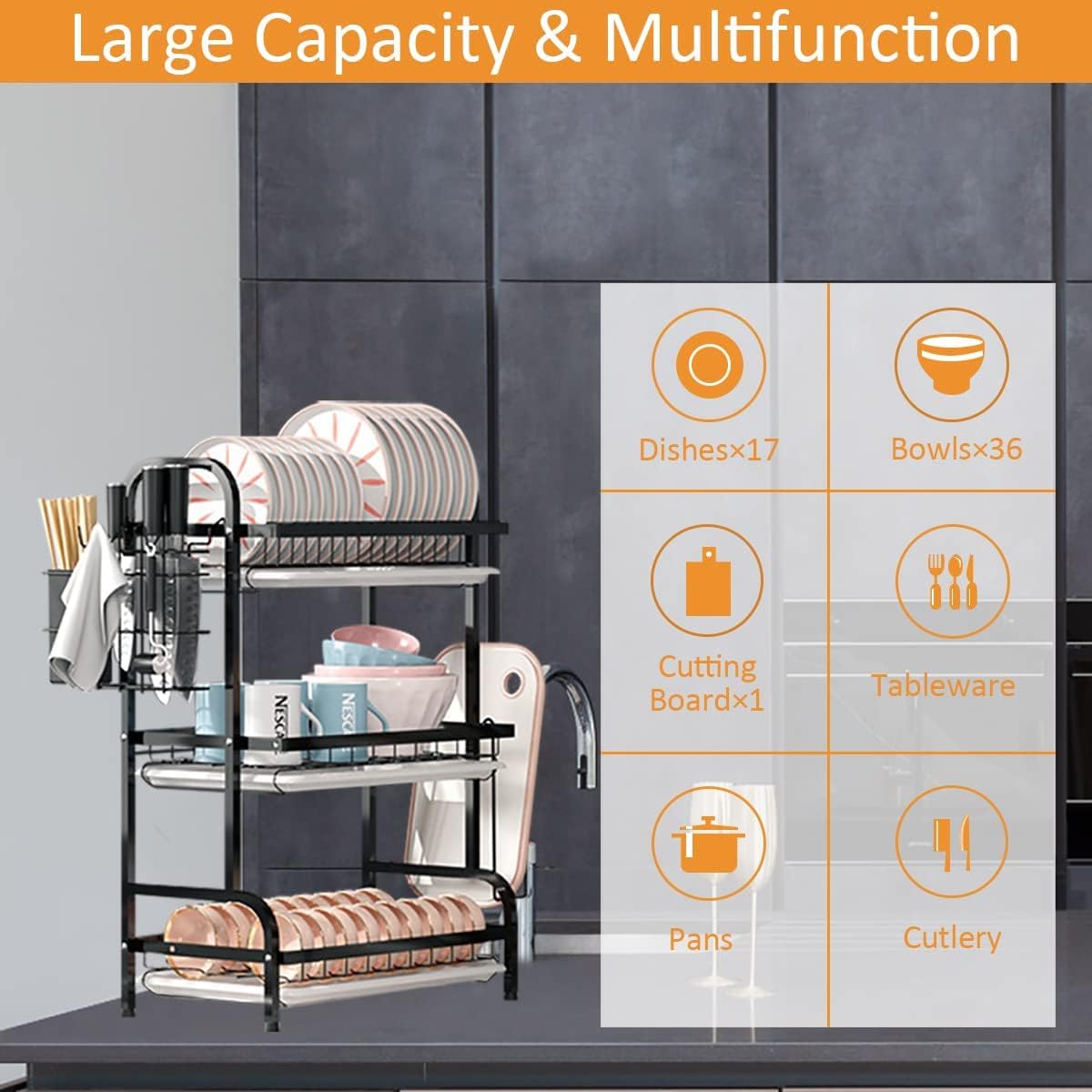 ⚡ Messy countertop after washing dishes? Keep everything clean, dry, and organized with this 3 Layers Dish Drying Rack. 🧺 3-Tier Drying Design Multiple levels give more space to dry plates, bowls, cups, and utensils neatly. 🔪 Utensil & Board Holder Built-in holders keep spoons, chopsticks, ...