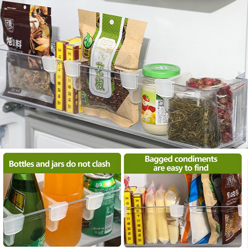 Holds items firmly in place, no more sliding, mixing, or spills in the fridge door.