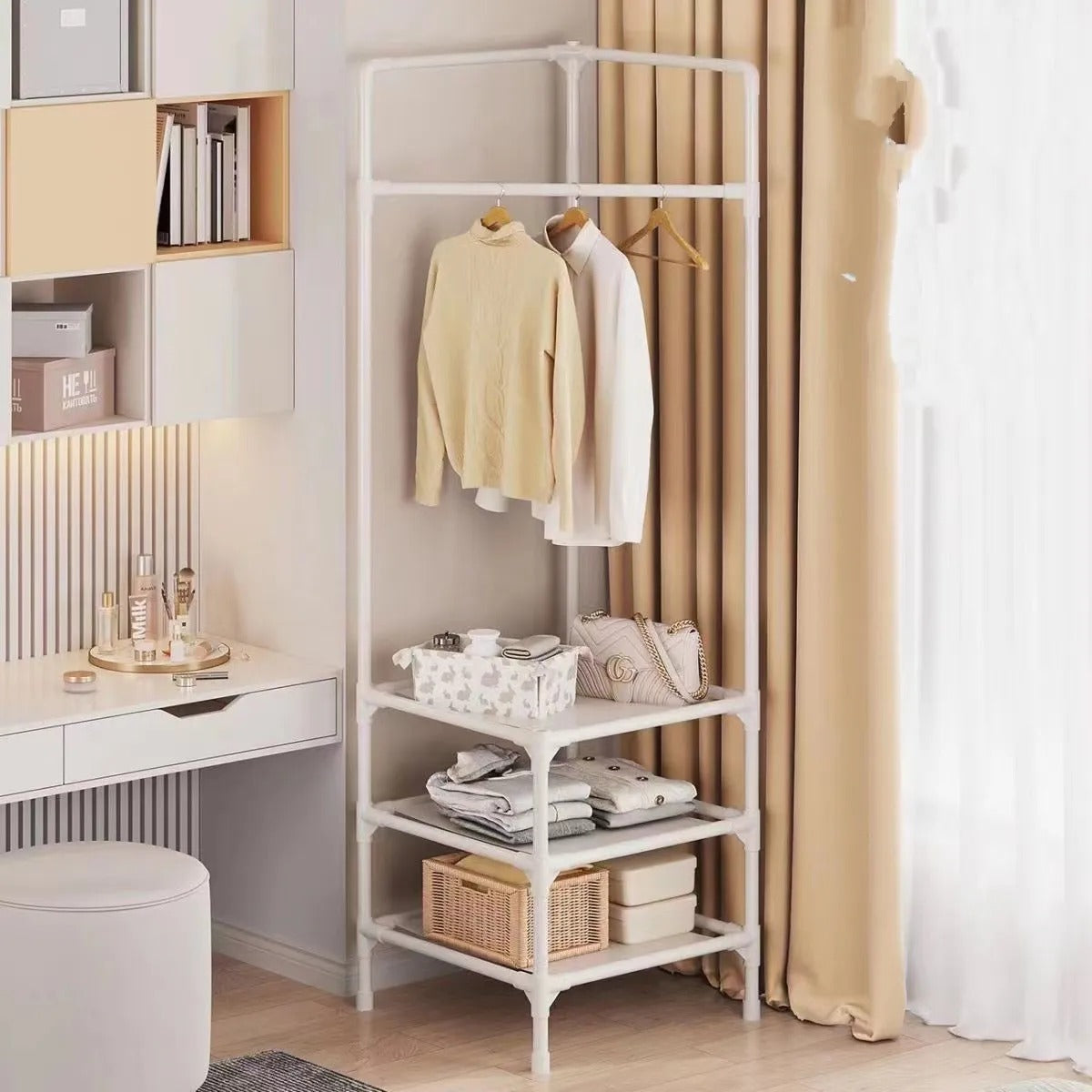 ๐งบ Maximize Your SpaceOrganize clothes, bags, and accessories with this adaptable corner rack. ๐ผ Multi-Use Storage Hang coats, hats, scarves, and more with adjustable shelves, hooks, and bars. ๐ก๏ธ Ground Protection Equipped with bottom corner sleeves to prevent scratches and protect your floors, ...