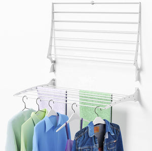 The Retractable Wall Mounted Drying Rack saves space, looks modern, and handles a full load of laundry with ease!
