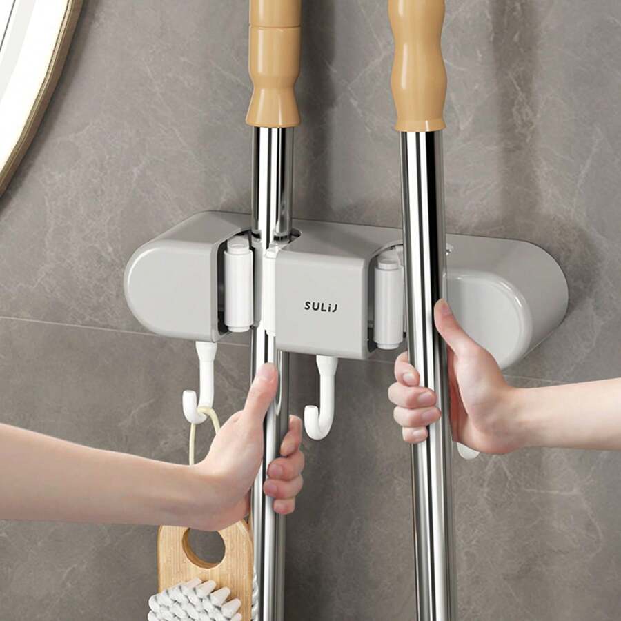 Multifunctional Mop Holder (2 clips and 3 hooks)
