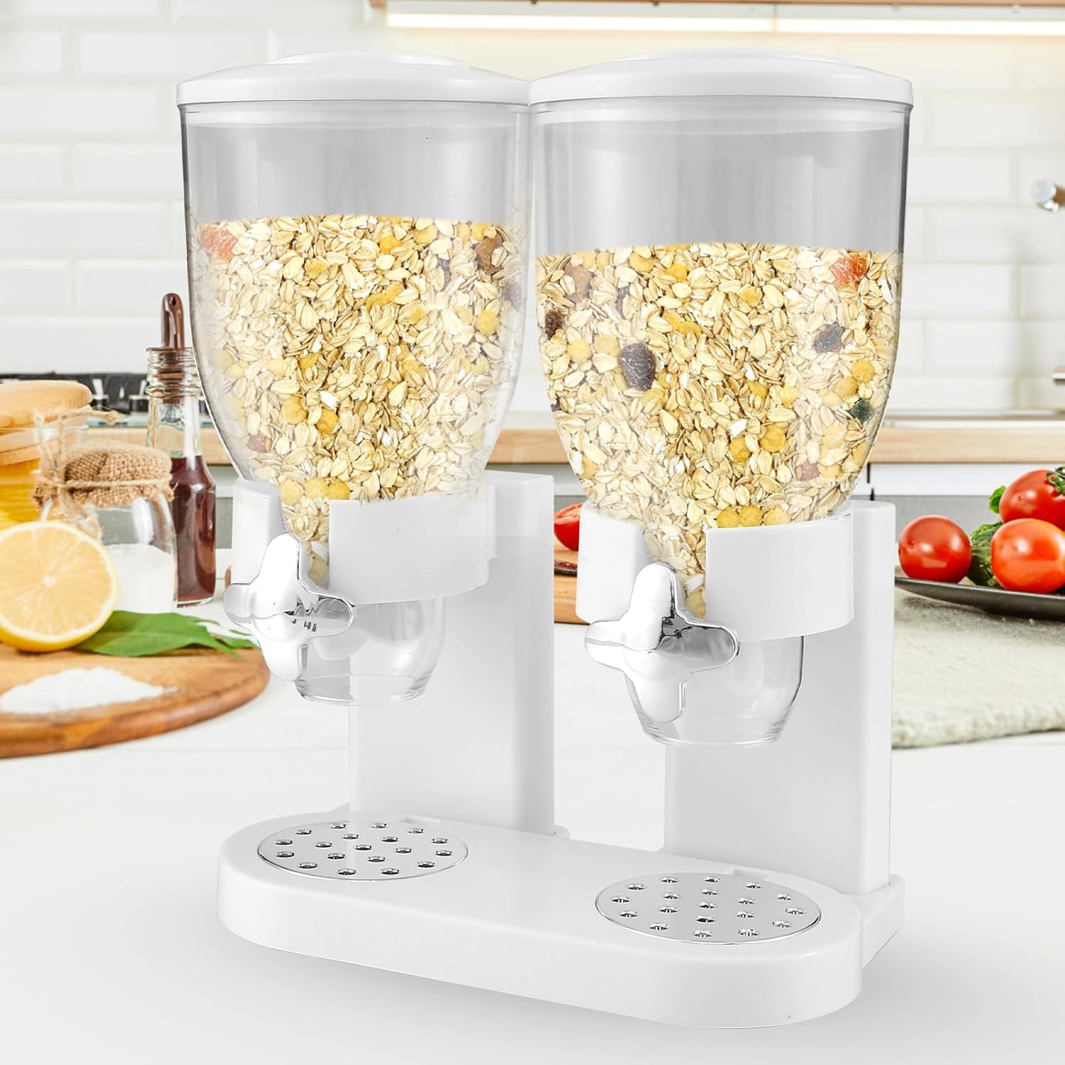 🥣 Tired of Hard and Musty Cereal and Messy Storage? Our Double Cereal Dispenser keeps your food fresh, organized, and easy to access perfect for a clutter-free kitchen! 🥣 Wide Storage Perfect for cereals, grains, nuts, coffee, snacks, and more, ideal for home and kitchen use. ✨ Easy to Use Tran...