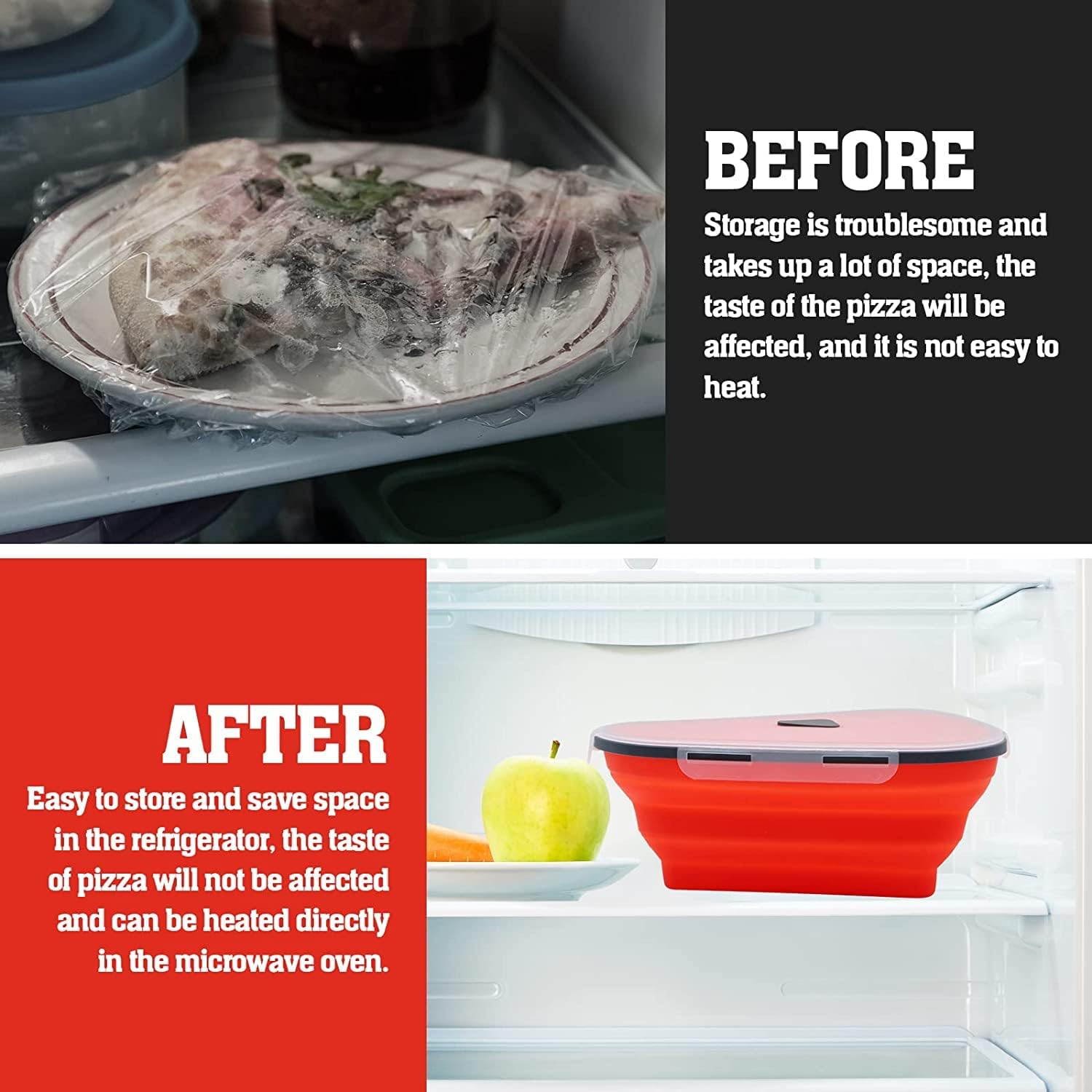 🍕 Say Goodbye to Rotten Food!Keep your food fresh, organized, and ready to reheat. 📏 Space-Saving Foldable design fits your fridge while holding just the slices you need. 🔥 Microwave & Fridge Safe Move slices straight from fridge to microwave with ease. 🍽️ 5 Divider Trays Keeps slices sepa...