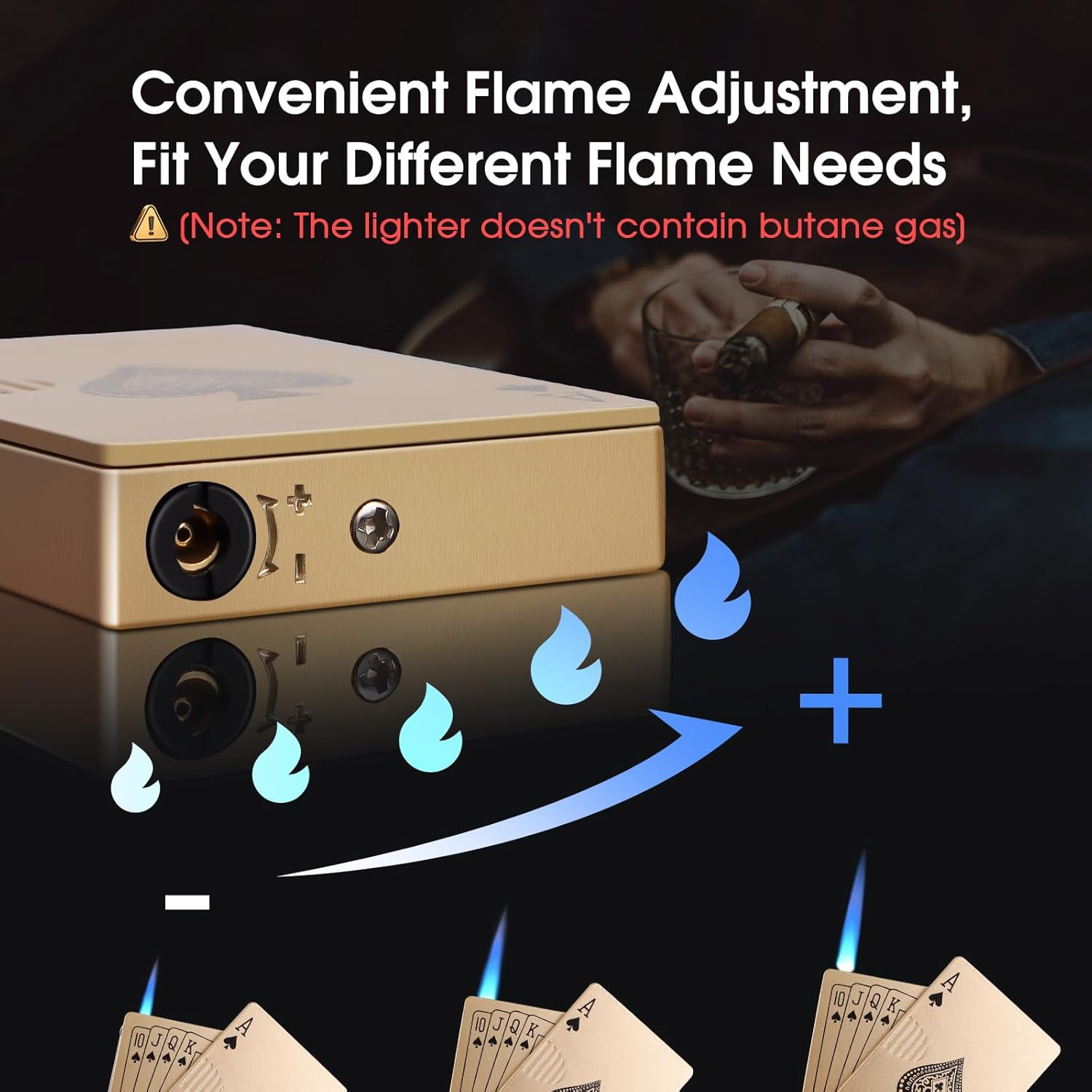 🐊 Looking for a Reliable Lighter? The Magic Double Flame Lighter combines style and versatility for any occasion. 🔥 Two Flame Modes Switch between a windproof blue flame and an open flame for added fun. 🔄 Easy to Refill Refill through the back hole and wait for the gas to warm up. 🔧 Adju...