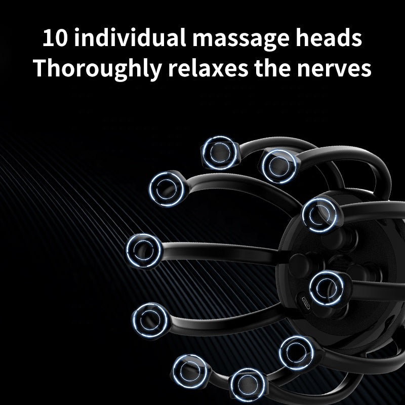 With 10 massage heads and vibrating contacts, it delivers a full-head massage experience, gently pressing your head muscles to release tension and improve circulation.