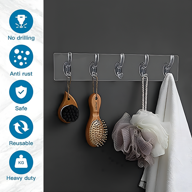Transparent hooks blend seamlessly with your walls, offering a stylish and clean look without compromising functionality.